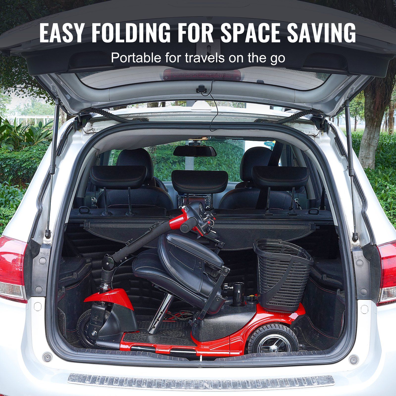 VEVOR 3 wheel folding mobility scooter supports up to 265 pounds, offering unmatched stability for the elderly, adults, and individuals with disabilities. 24V 12Ah battery delivers an extended range of up to 12 miles per charge, ensuring users can undertake daily activities with ease and confidence.
